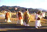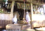 夜神楽は、午後2時頃の宮神楽、道行き神楽(御神幸)、舞入れ、御神屋始めに始まり、夜を徹して33番の神楽を舞い明かしますが、地区によっては多少時間や舞順が変わります。 >>>●高千穂の夜神楽(33番の解説)● |